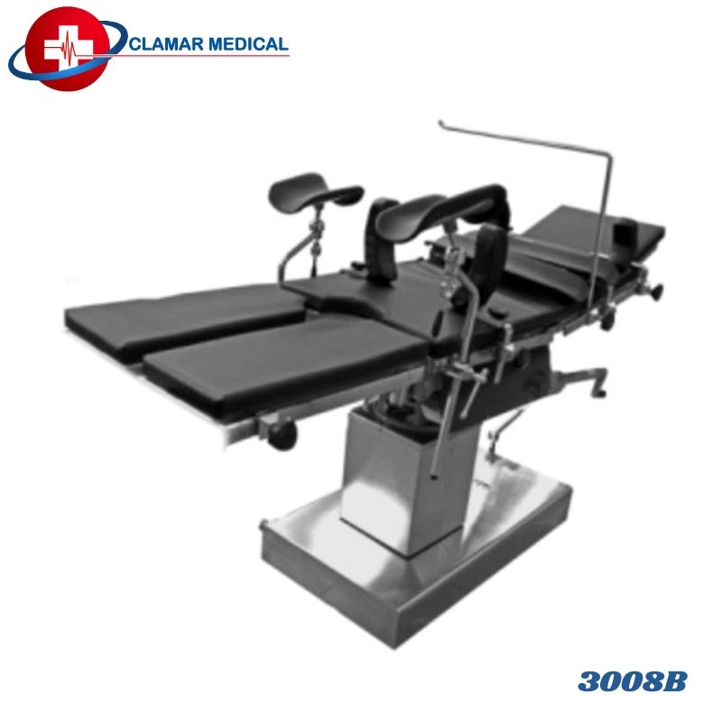 Dimensiones de la mesa de operaciones: 2050+50 mm Altura mínima 750 mm Altura máxima 950mm Descripción La mesa 3008B es un modelo de mesa versátil de accionamiento manual que permite una amplia variedad de configuraciones para cirugía general y especial, también en sitios donde no hay electricidad. También se adapta a pacientes de mayor contextura.
